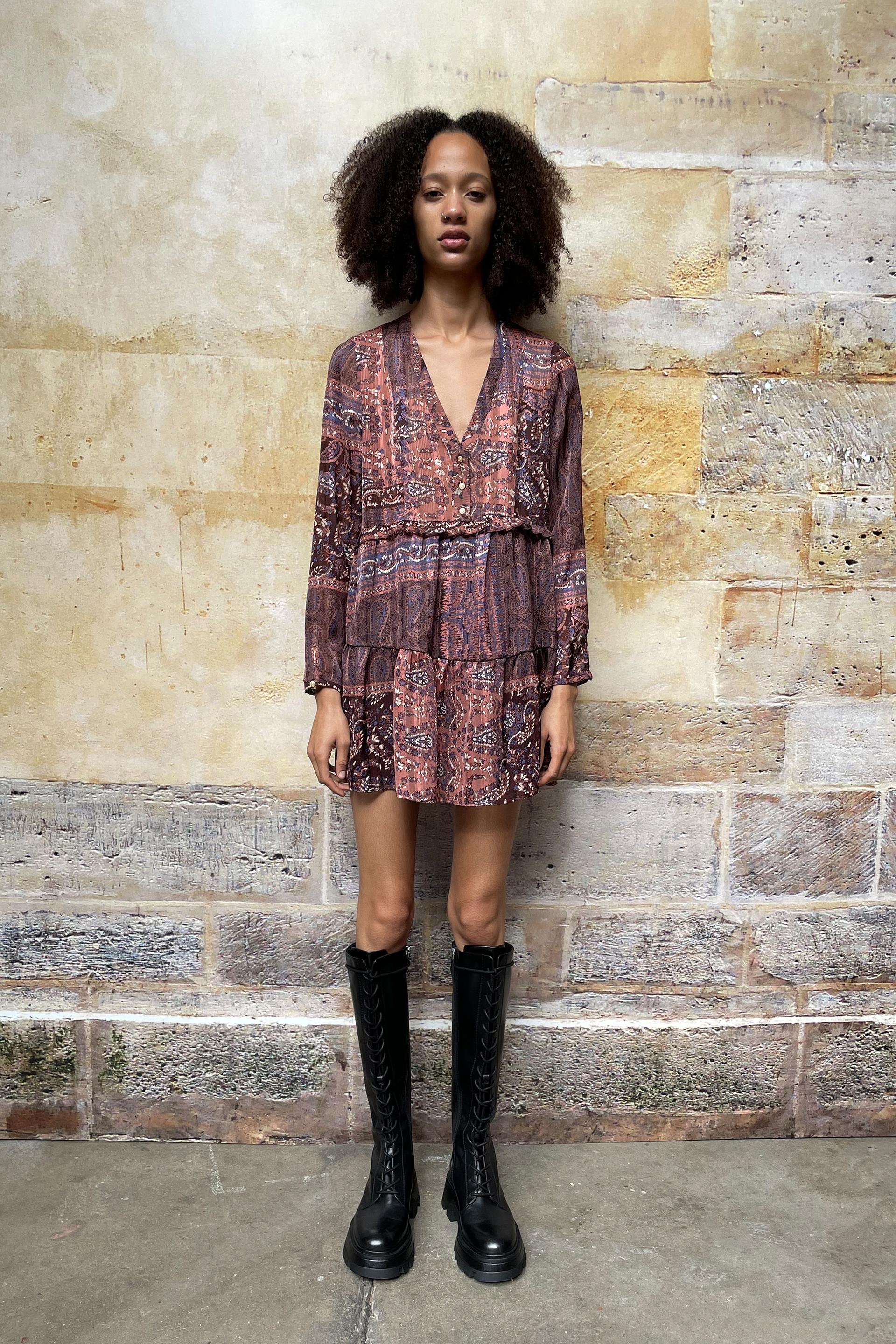 Zara Patchwork Long Sleeves Midi Boho Dress Size Xs Boho Festival Maxi Ebay